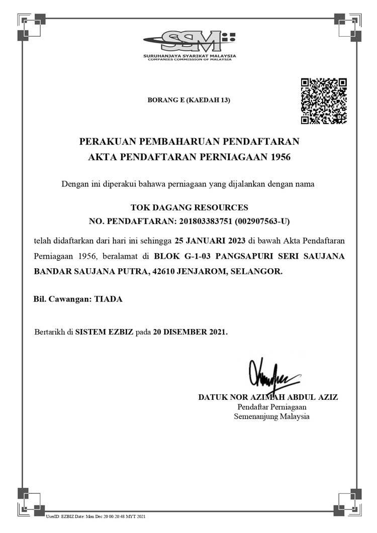 Nama Perniagaan: TOK DAGANG RESOURCES